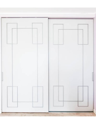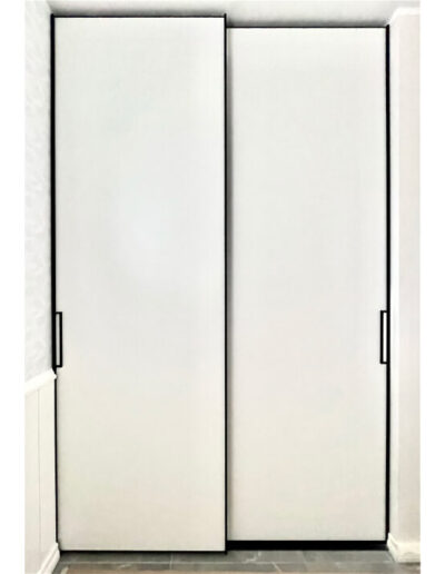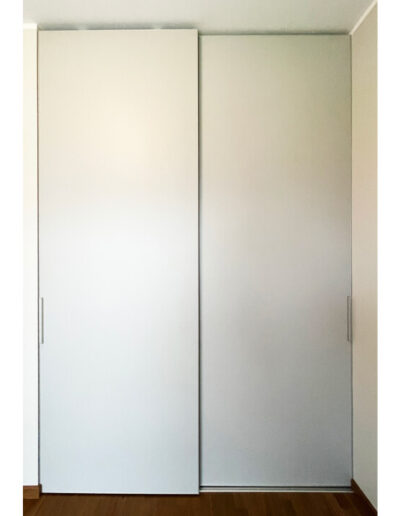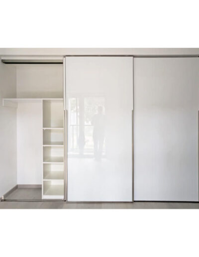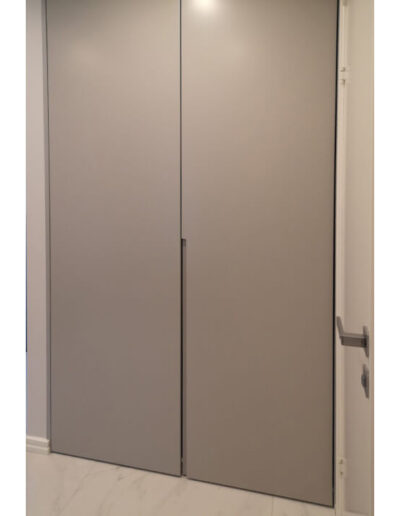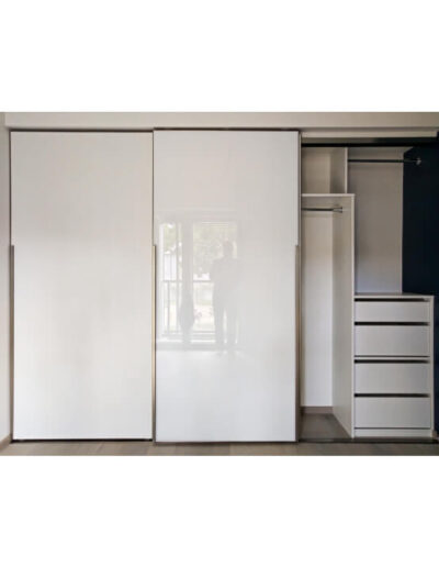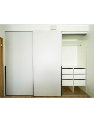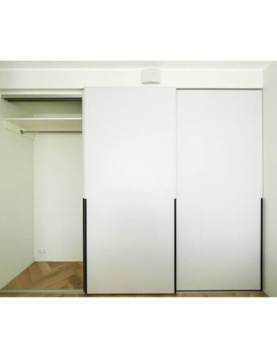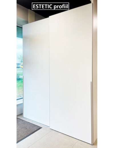 Keskmise hinnakategooria uksed: profiil Shafir, alumiiniumvärv, viimistlus – mööbliplaat, valge; 2 ust, sulgurid puuduvad. Hind: 641 eurot.