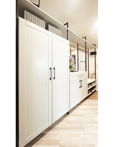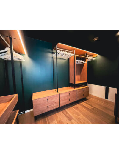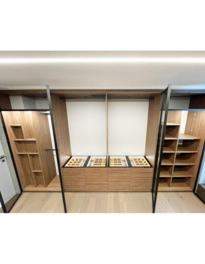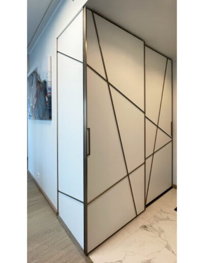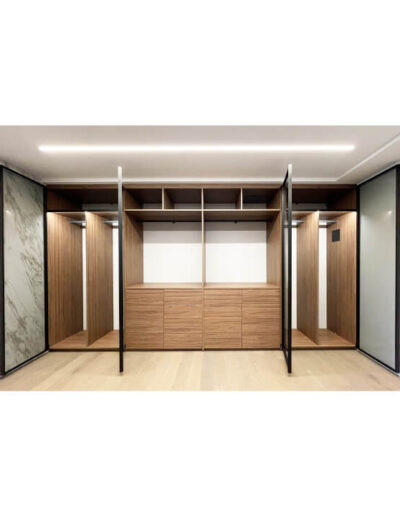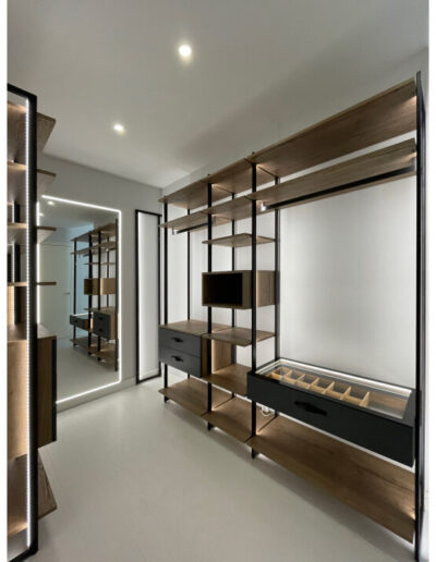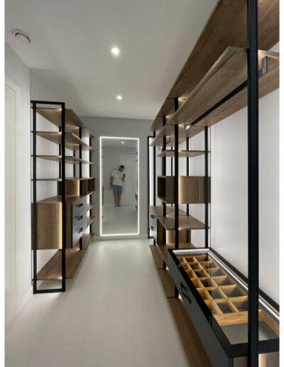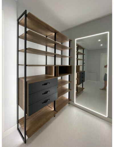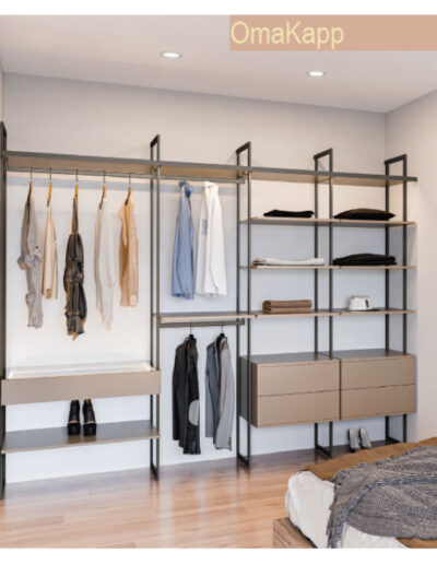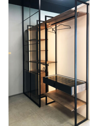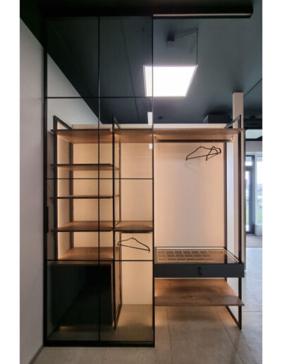 Meilt saab tellida nüüdisaegseid ja stiilseid metallraamidega garderoobilahendused. Raamid asendavad seinu (vertikaalsed toed), tänu millele tekib visuaalselt kerge ka minimalistlik disain. Näidis asub salongis ja see ei jäta kedagi ükskõikseks 🙂