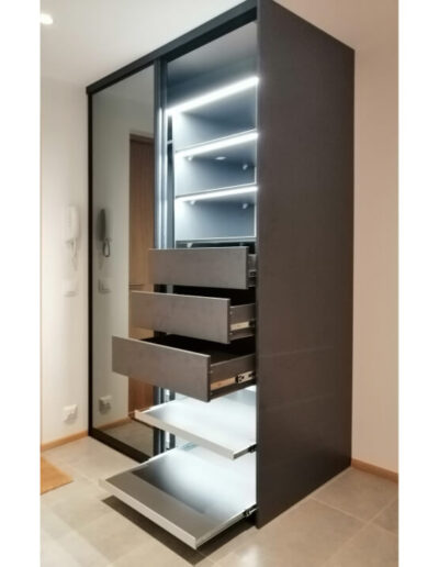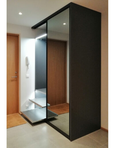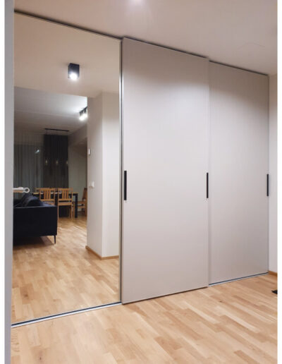 Sisseehitatud kapp peegliga Eesti inimeste lemmik esiku lahendus, seest liuguksed peegliga hoiavad ruumi kokku kuna avamiseks ei vaja ekstra ruumi ja tekkitavat avarus.