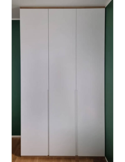 Valmistame käändustega (hingedega) riidekappe EGGERi, CLEAFi mööbliplaatidest ja värvitud MDF-ist. MDF võib olla matt, poolmatt või läikiv, raamidega ja sile, freesitud või pealistatud käepidemetega.