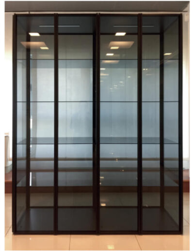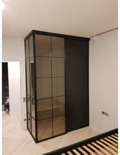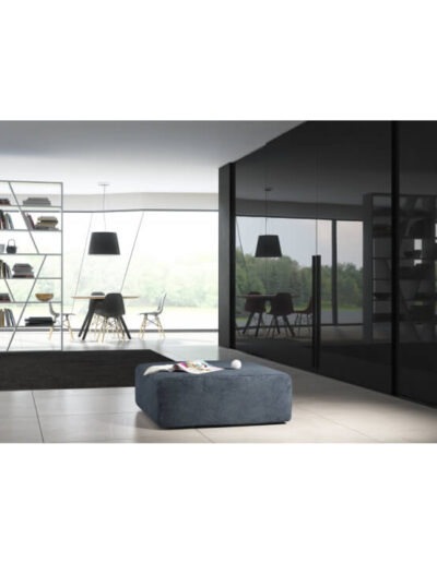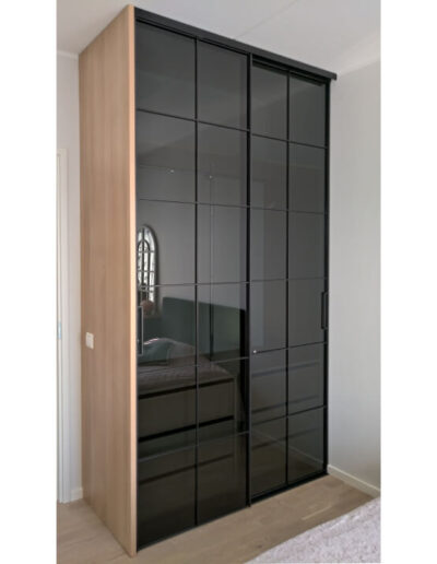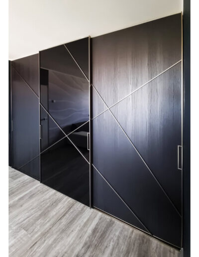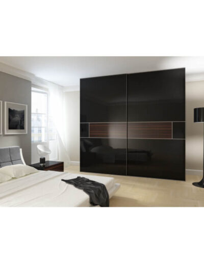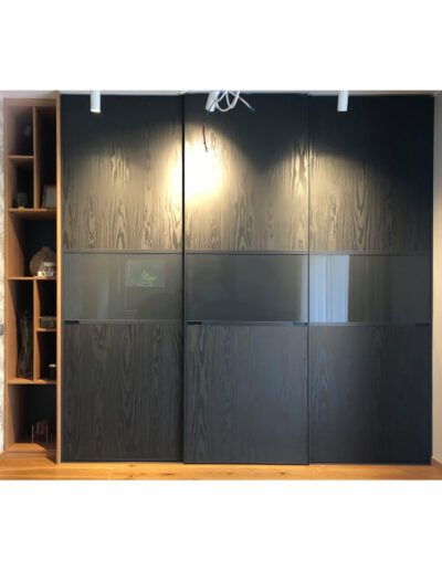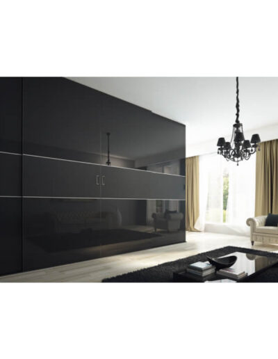 Nüüdisaegsed lükanduksed: õhuke profiil Estetik, must värv, viimistlus (kallimate näitel värvitud klaas), 4 sulgurit, 3 ust. Hind: 2907 eurot.