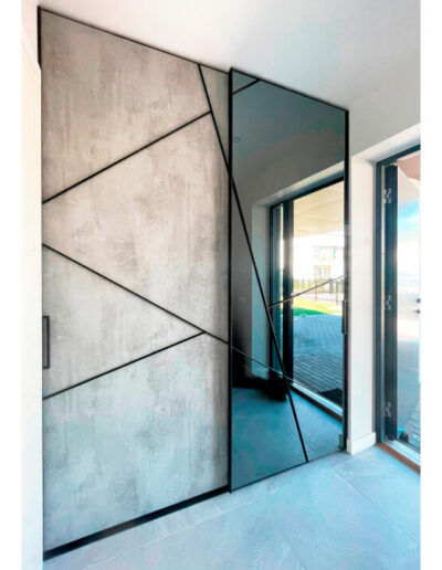 Valmistame ka toonklaasiga, värvitud (läbipaistmatu) klaasiga ja peegliga alumiiniumprofiilist hingedega uksi.