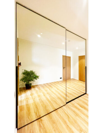 Magamistoa kapp, võiks olla võimalik suur ja saamas nähtamatu – sellise ülesande täitmiseks sobivad kõige paremini meie liuguksed Estetic, peenikeste profiilidega ja varjatud ülemiste siinidega.